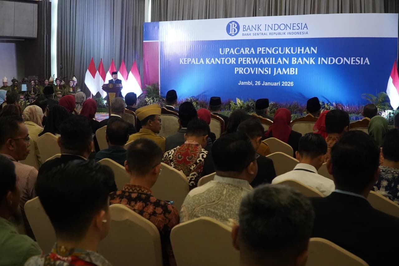Bmcnews.id,Jambi – Gubernur Jambi Dr. H. Al Haris, S.Sos, MH mengemukakan, Pemerintah Provinsi Jambi berkomitmen bersama Bank Indonesia untuk terus mengendalikan inflasi melalui Tim Pengendalian Inflasi Daerah (TPID), termasuk menghadirkan toko inflasi di sejumlah pasar guna menjaga stabilitas harga bahan pokok, diberbagai daerah di Provinsi Jambi. Hal tersebut dikemukakannya saat menghadiri Pengukuhan Kepala Kantor Perwakilan Bank Indonesia Jambi, bertempat di Swiss-Belhotel Jambi, Senin (26/01/2026) pagi.